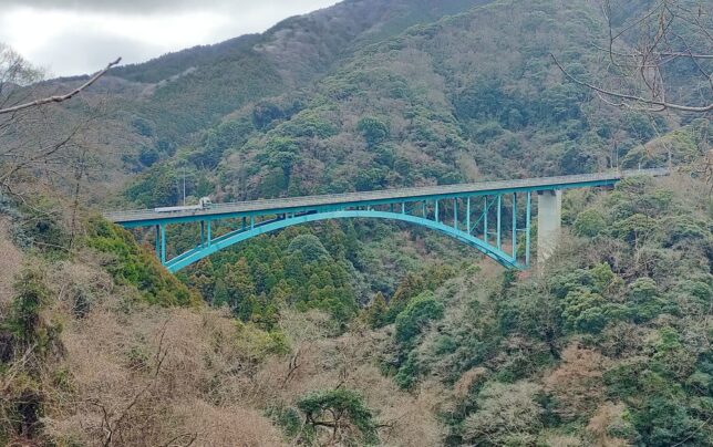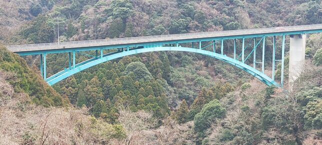 朧(おぼろ)大橋は八女市上陽町下横山に位置する,福岡県管理の上路コンクリートアーチ橋です.福岡県内では最大のアーチ橋です.現在は専ら観光用施設としての役割が大きいようです.全長293m,高さ70m,アーチ支間172mです.