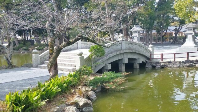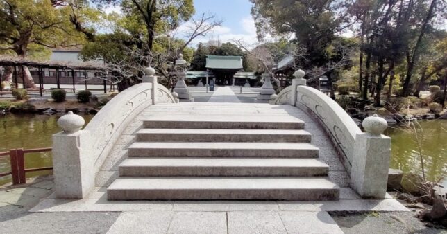 天満宮の橋は太鼓橋と直橋の三つの橋があります.仏教思想にいう「過去」「現在」「未来」の三世一念の相を現わし,この橋を渡ることによって三世の邪念を払うともいわれ参拝者の身を清める橋でもあります.