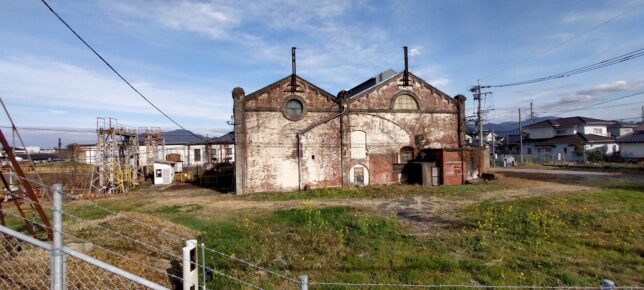 遠賀川水源地ポンプ室は,1910年より中間市で操業を開始した,官営八幡製鐵所の生産拡大に伴い建設された送水施設です.石炭ボイラーを入れるためのボイラー室と,蒸気式のポンプが置かれたポンプ室の2つで構成されています.建屋はイギリス積みの赤レンガ造で,アクセントに灰白色の鉱滓煉瓦(こうさいれんが:鉄を作る際にでるスラグ)が使用されています.