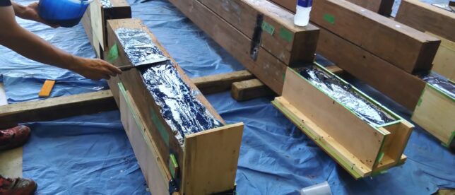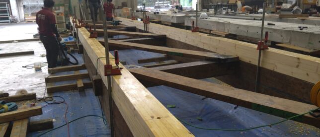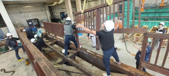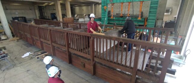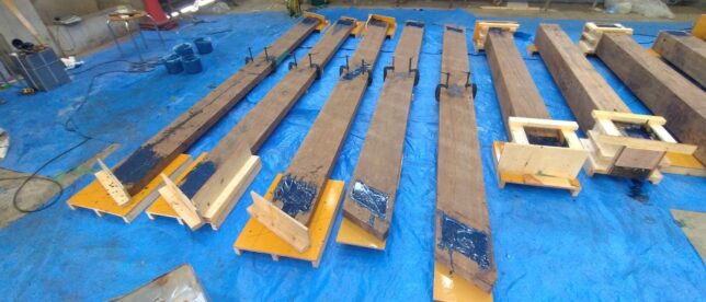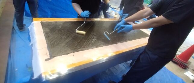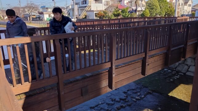 2025年度は,葛西用水に架かるふれあい橋のリノベーションを行っています.この橋は幅2m,橋長14mであり,比較的大きくて作業量がとても多いです.学生さんが頑張っています.また,日鉄ケミカル&マテリアル様から,樹脂や炭素繊維シート材料のサンプル提供をいただいています.お礼申し上げます.