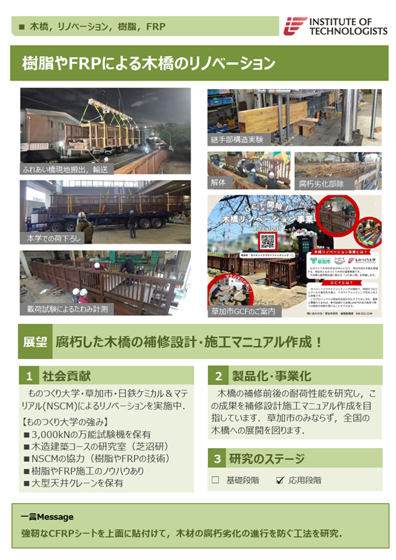 木造橋(草加市)のリノベーションとCFRPによる補強に関する実験研究