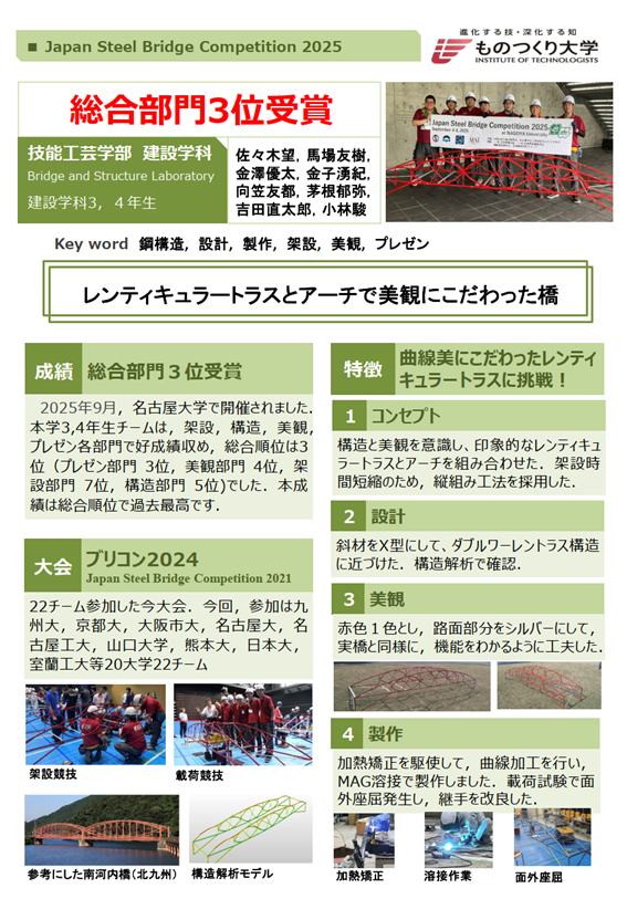 Japan Steel Bridge Competition2025 総合3位入賞