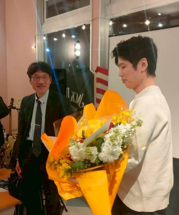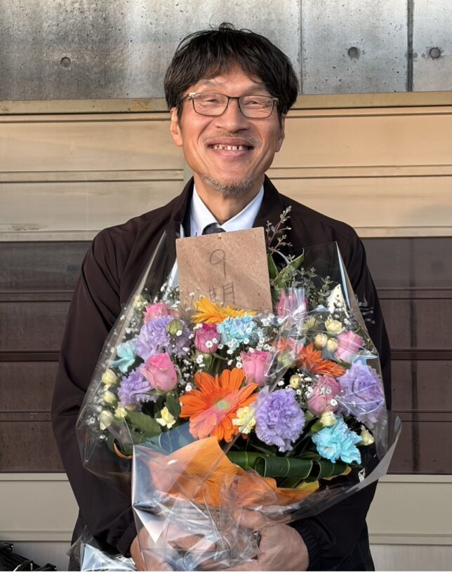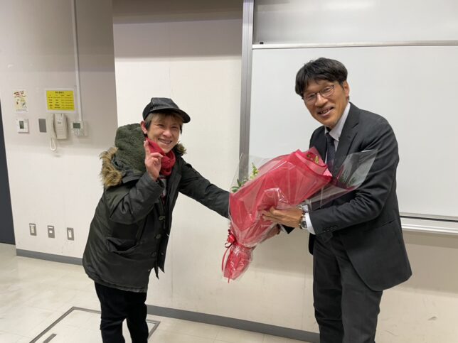 皆さんから花束を頂きました.ちくのぼさんが贈呈者でした.