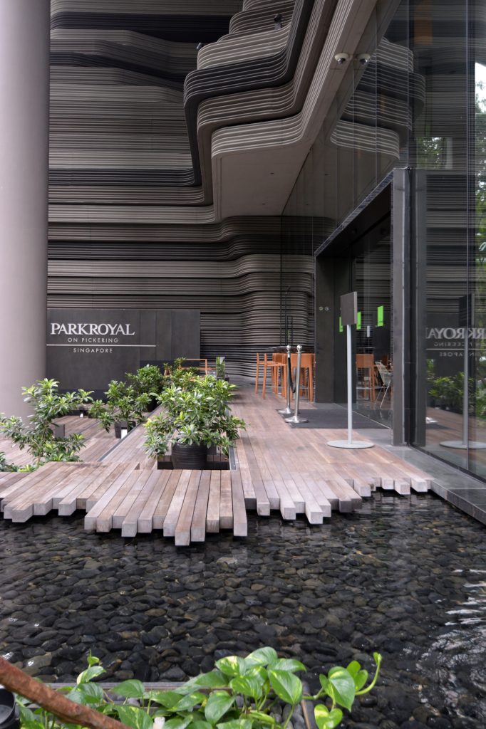 また、法律で緑化率がかなり高く設定されており、このことが熱帯雨林気候で高温多湿でありながら快適な環境を作ることに寄与しています。その緑化率の高さにより、敷地内の空地に緑化するのみでは足らず、屋上緑化、壁面緑化、ある程度の中層建築物以上では中間階の緑化が当たり前のように施されており、それらの建築が集まった景観には独特な特徴があります。また、制御しにくい樹木という存在を、管理も含め見事にコントロールしている様は日本の都市ではなかなか見られないものでした。