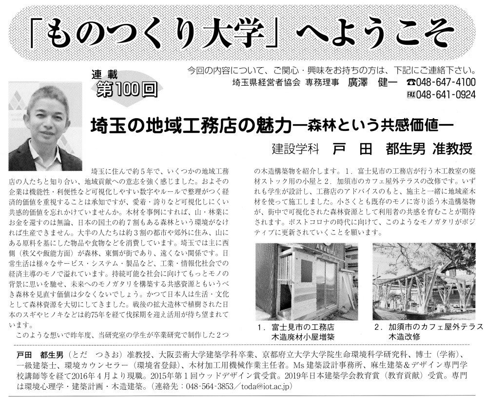 『埼玉の地域工務店の魅力-森林という共感価値-』と題して,埼玉県経営者協会の「埼経協ニュース」2002年6.7月号へ寄稿しました。