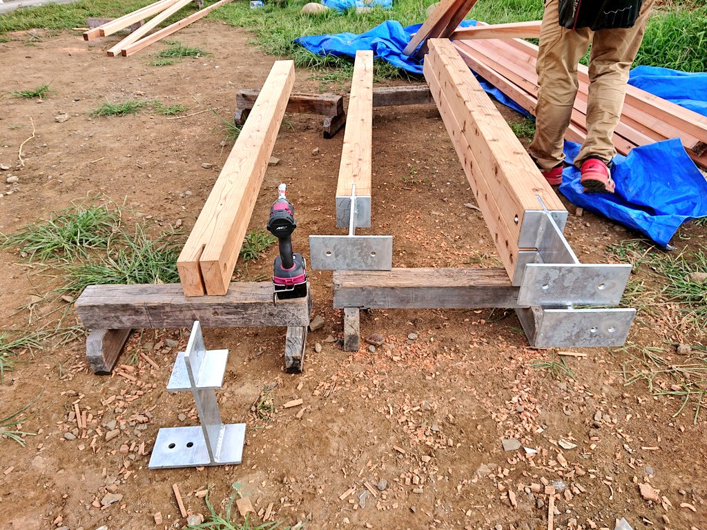 7月の基礎打設後,8月,離れ家はいよいよ土台敷き,建て方です。