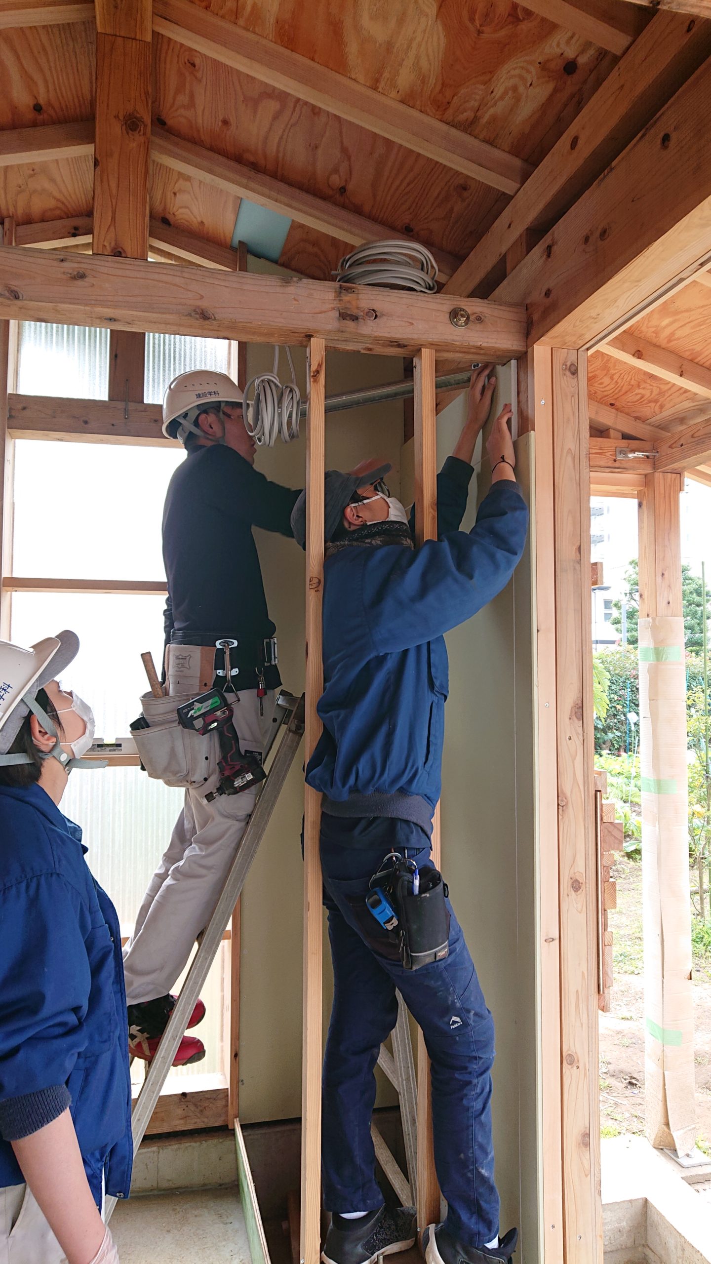 離れ家の外壁(下見板張り)もほぼ完了し,内装の下地PB(プラスターボード)もほぼ完了。