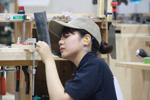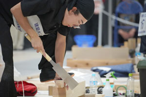 机や椅子のような角材を使う「脚部」や、たんすや書棚などの板材を加工する「箱物部箱部」、そのほか「蓋および引き出し部」で構成された木製家具を、迅速かつ丁寧に製作する技能を競います。箱物は収納が目的となるため、引き出しや引戸などのスムーズな動作が必須。そのほか図面の仕様書との整合性、寸法、木地表面の出来栄えなども評価対象です。