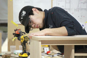 | 家具 | 2年 髙野 柊吾 (山形 米沢工業高等学校 出身) 3年 谷口 明希(東京 工芸高等学校 出身) 4年 重松 宏征(愛媛 松山聖陵高等学校 出身) |