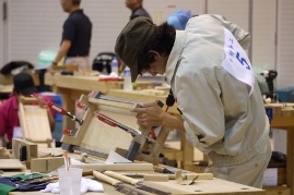 木材加工職種には2009年度第4回大会から毎年2名の学生が建設学科から挑戦しています。2011年度第6回大会に出場した2年生の高橋智也くんが優勝を果たした他、2010年度は2年生の渡辺薫恵さんが2位、1年生の榎本将紀くんが3位に入賞し、2012年度は1年生の志水元紀くんが2位に入賞しました。