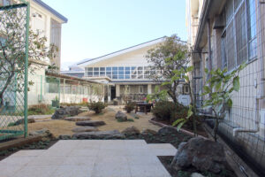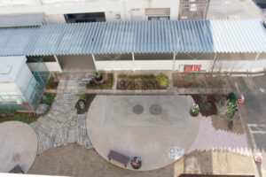 田子さんをはじめ三原研究室の学生と岩槻商業高校生徒との協働で 整備された中庭は高大連携の証となり、 更なる連携へと繋がることを期待しています。