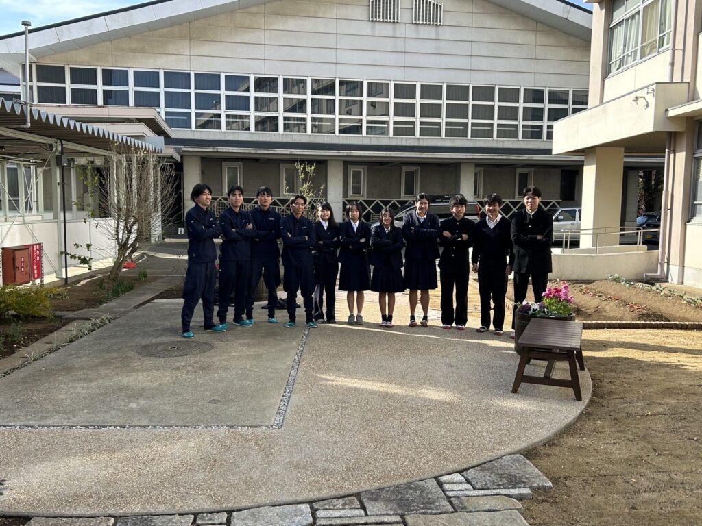 「暑い中も含め、長い間ありがとうございました」と感謝の声をいただきました。完成が冬だったので、今はまだ木々が少し寂しい姿をしています。だから高校生たちには「春に芽吹くまでは、しっかり水をあげてね。これからどんどん緑が増えていくから」と伝えました。校長先生が庭を眺めて、「あそこに何か植えたいな」とポツリとつぶやいてくださったのはうれしかったですね。