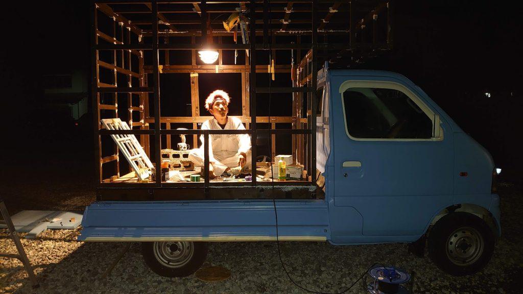 運転免許取得時に、祖父から譲り受けた20年ものの軽トラックの荷台を何かに活かしたかったのが、そもそもの始まりです。最初は、大好きなヒマワリを皆に見てもらうために荷台で育てていましたが、大学1年の2月頃から新型コロナウイルスが拡大し始め、2年生の最初の頃は全ての授業がオンライン授業になりました。そこで、「オンラインならば全国を旅しながらでも授業を受けられるんじゃないか」と思い立ち、モバイルハウスの制作が始まりました。