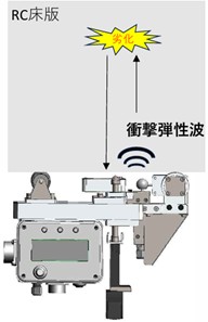 次に、コンクリート構造物の劣化調査では、高速道路のコンクリート床版の劣化に着目し、私はコンクリート床版の内部劣化を調査する衝撃弾性波法の自動打撃装置の開発を(株)ネクスコ東日本エンジニアリング、リック(株)、(株)シーテックと共同研究を行っています。衝撃弾性波法は、コンクリート面を鋼球などで打撃し、衝撃により発生した弾性波をコンクリート面に受信センサとして設置した加速度計により受信して、コンクリート内部等の状態を推定する試験方法ですが、実構造物での適用事例が少ないです。また、打撃・受信方法についても従来の人力ではなく、一定の力でコンクリート面を打撃でき、弾性波を正しく受信できる機構を持つ自動打撃装置を開発しました。現場実装に向け、実橋梁による検証や、容易な測定手法、評価方法の確立に取り組んでいます。