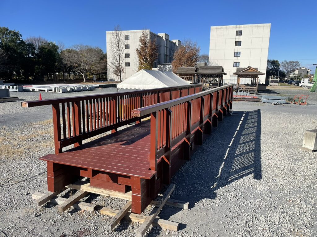 とにかく加工と組み立ての物量が膨大でした。例えば、高欄の縦材を差し込むための穴を200個ほど開ける作業などは、非常に時間がかかり苦労しましたね。また、仕上の際、通路側の柱の節(ふし)が目立つ箇所に塗装がうまく乗らず、黒ずんでしまった部分がありました。そこを小さな木材で丁寧に補修する「埋木(節などの穴を木片で埋める作業)」を施し、指先で触れたときに引っかかりがないよう、徹底的に磨き上げました。