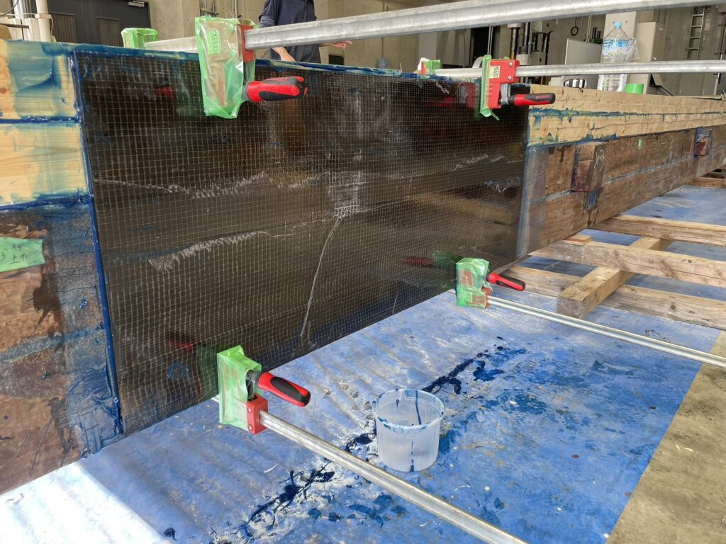 僕は木造が専門なので、樹脂やCFRPシートに関する知識は全くない状態からのスタートでした。しかし、今回手がけた高欄も、実は笠木の部分にシートを巻くなど、先端素材の技術や知識が必要な場面があったんです。そんな時、小林君や大垣研の皆さんが人手を出して一緒に作業してくれたり、大学院生の先輩が木造の作業まで手伝ってくれたりと、知識面でも作業面でも本当に支えられました。自分一人では決して届かなかった領域を、仲間のおかげで形にすることができました。