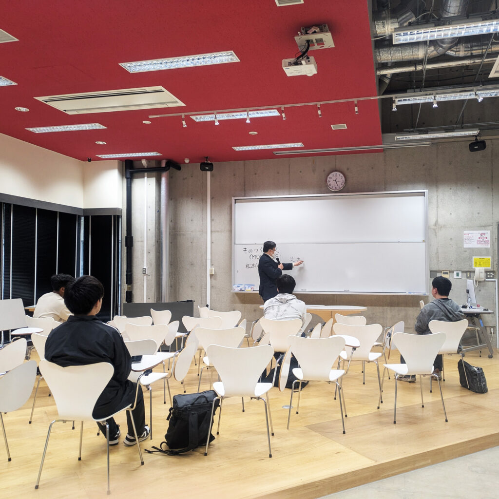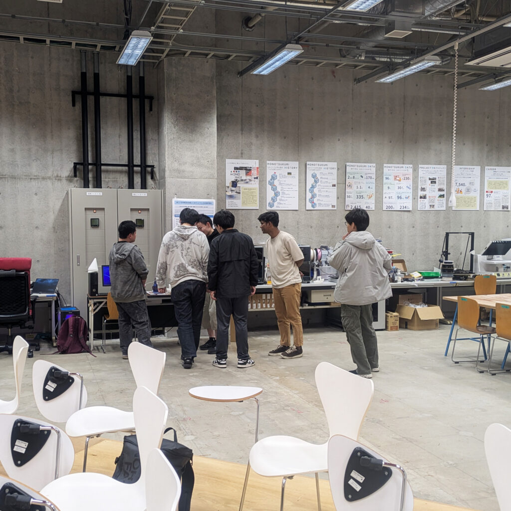 4月9日(木)17時15分より、MONOBASEの説明デモを開催しました。当日は1年生4名および4年生1名が参加し、施設紹介や機器の説明を行いました。