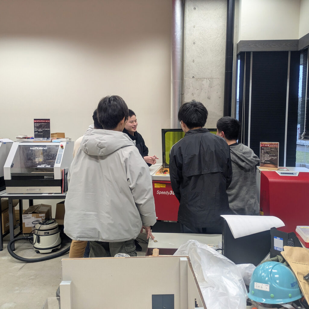 その後、3Dプリンターやレーザー加工機を用いた簡単な作品制作の実演を行い、実際の活用イメージを体験していただきました。