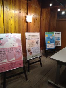 建設学科からは、行田市のトピックとして「真観寺仁王門の調査と復原」の図面展示、昨年度市役所と大学のコラボ企画で実現した行田市花いっぱい運動のフラワーフォトスポットのパネルを展示しました。