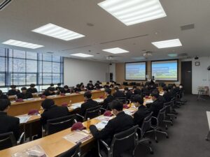 2025年11月20日(木)、埼玉県立熊谷工業高等学校電気科の1年生39名が大学見学で来学されました。生徒の皆さんの多くが初めての大学見学ということもあり、本学の施設、設備に興味を惹かれたようでした。オープンキャンパスにもご参加いただけることを期待しています。