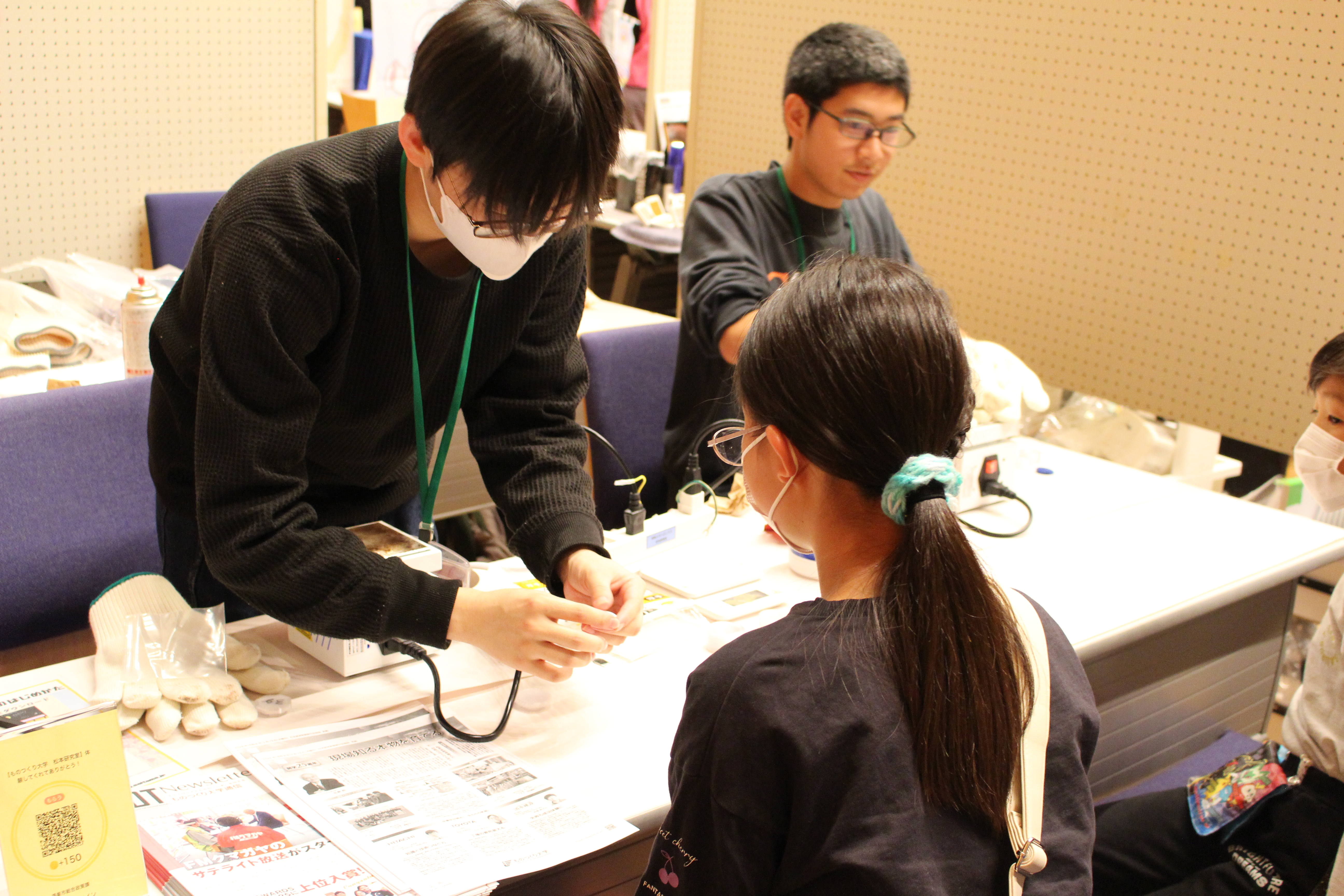 松本研究室は、3Dプリンターを利用した際に発生したプラスチックの端材を活用した制作体験を行いました。老若男女を問わず多くの方々にご参加いただき、SDGsに関する理解を深めていただきました。