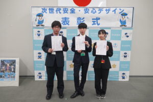 学生プロジェクト「MDP(ものつくりデザイナーズプロジェクト)」に所属する、峯岸孝輔さん(建設学科2年)、大友陽奈さん(建設学科2年)、関根暖來さん(情報メカトロニクス学科2年)の3名が、埼玉県警察主催の「次世代安全・安心デザイン」コンペにおいて、感謝状を授与されました。