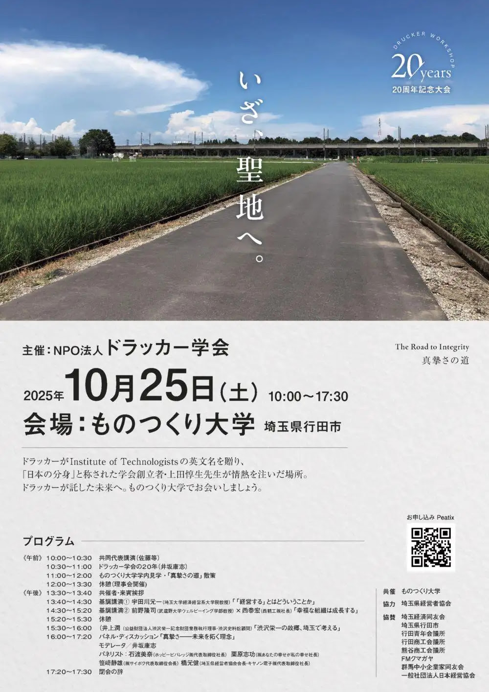 ◆ NPO法人ドラッカー学会 20周年記念大会「いざ、聖地へ。The Road to Integrity/真摯さの道」/NPO法人ドラッカー学会HP
