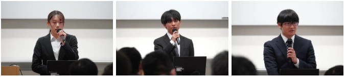 左から)最優秀賞 細野萌久(建設学科)、優秀賞 榎並優太(情報メカトロニクス学科)、優秀賞 西尾拓海(建設学科)
