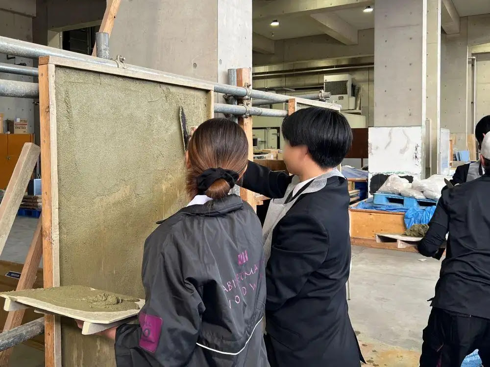 12月4日(木)、栃木県立栃木農業高等学校の1年生37名が、建設学科を見学しました。学科の紹介や、就職活動の説明のあと、学内の施設などを見学しました。実習場では左官の土壁塗りにも挑戦し、本学の特徴である実技実習を体験しました。